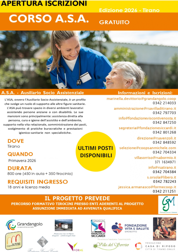 Il personale ASA svolge un fondamentale ruolo, anche in supporto ad altri operatori sanitari, in contesti che vanno dalle strutture residenziali per anziani e persone disabili, ai centri diurni e al domicilio stesso della persona fragile. L’assistenza prestata dall’operatore ASA, la cura responsabile dell’ambiente in cui la persona vive, le relazioni significative che si instaurano nel rapporto d’aiuto, concorrono a garantire il benessere e la dignità delle persone assistite, specialmente nei loro momenti di maggiore vulnerabilità.